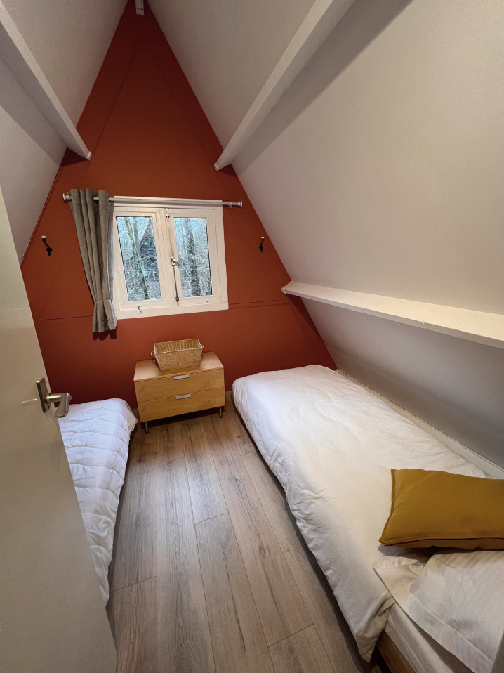 La chambre est équipée de 2 lits 1 personne qui peuvent être mis l'un contre l'autre pour faire un lit double. Les couettes et draps pour cette chambre seront de 2 fois une personne