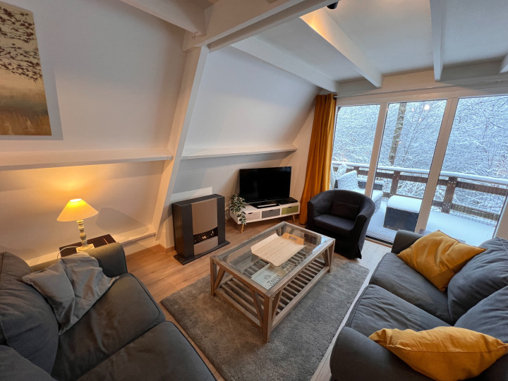 Salon équipé de deux canapés confortables et fauteuils.