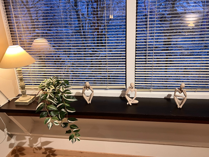 La cuisine est équipée d'un frigo avec petit congélateur, d'un lave-vaisselle, un four avec option micro-onde, d'un grille-pain, d'un bouilloire électrique, une machine à café traditionnelle et d'une senseo et de divers accessoires à patisserie
